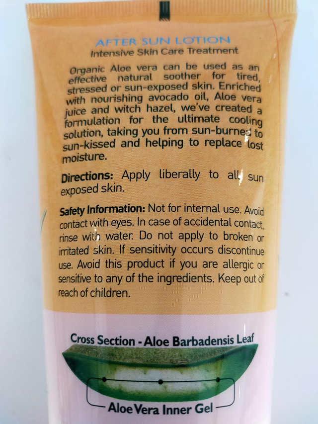 Help replace lost moisture in sun-exposed, dehydrated skin with this organic aloe vera after sun lotion that instantly cools, hydrates and nourishes for soothing relief. Enriched with organic aloe vera, avocado oil and witch hazel this natural after sun lotion takes you from sun-burned to sun-kissed and is an effective natural soother perfect for tired, stressed or sun exposed skin.