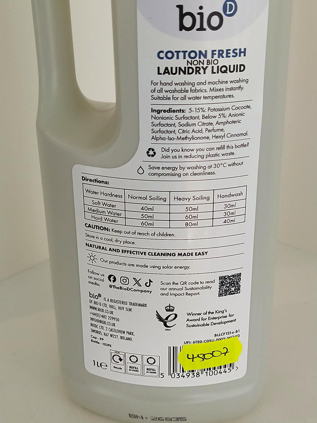Bio D Cotton Fresh Laundry Liquid 1 litre
