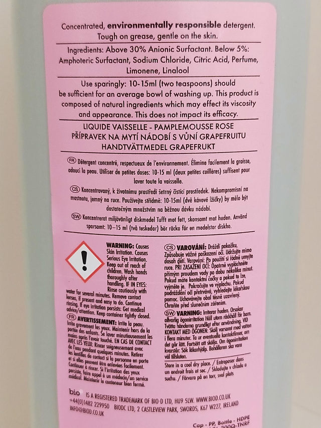 Bio D Pink Grapefruit Washing Up Liquid - 750ml 58565