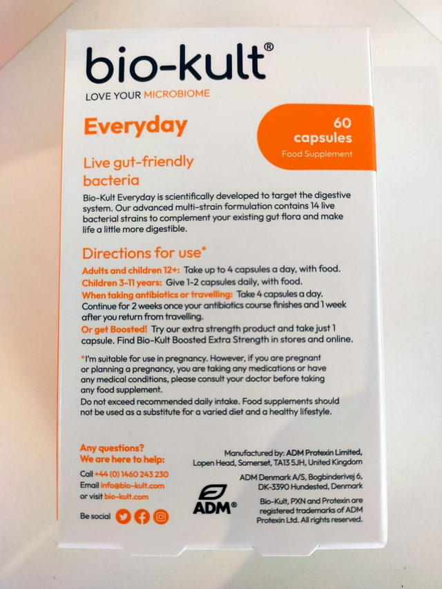 Bulking agent (microcrystalline cellulose), live bacterial cultures strains (milk, soya), vegetable capsule (hydroxypropyl methylcellulose).
