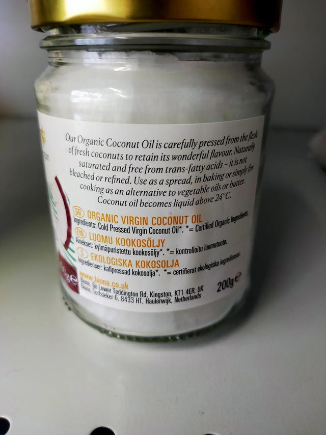 200 grams organic, vegan friendly Biona Virgin Coconut Oil.