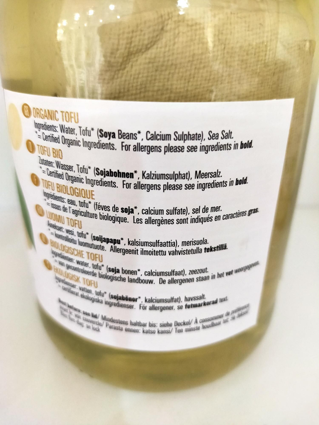 Water, Tofu*(soya beans*, calcium sulphate), Sea Salt *= Certified Organic