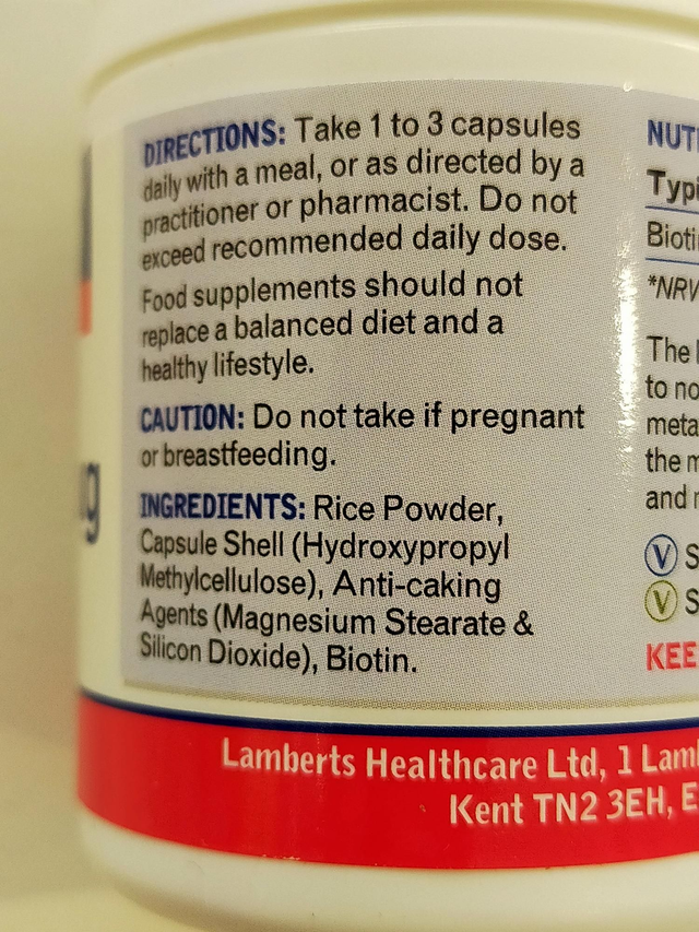 This is a high strength supplement that provides a level of biotin that would be difficult to obtain from most 'high street' multis. Each capsule provides a full 500µg of biotin.