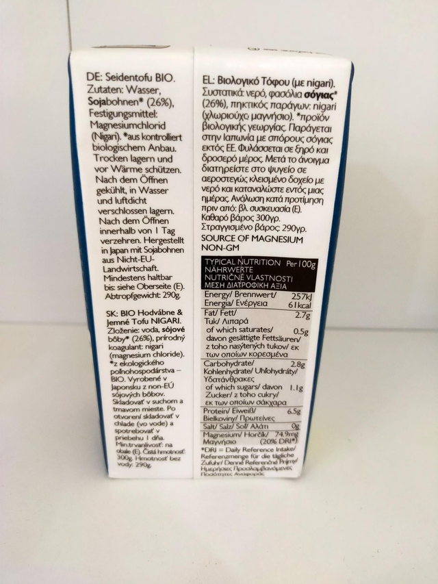 Water, soya beans*(26%), firming agent: nigari (magnesium chloride). *organically grown