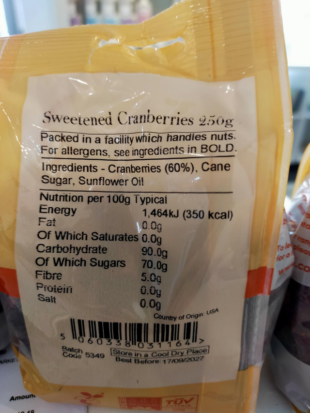 Dried sweetened cranberries 250g