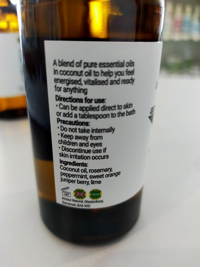 A blend of pure essential oils, peppermint, rosemary, sweet orange, juniperberry and lime, to help you feel energised, vitalised and ready for anything.