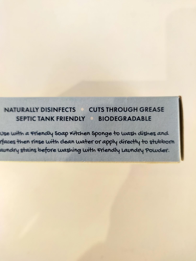 This sustainable Kitchen Bar is the perfect alternative to traditional washing-up liquid. It's gentle yet highly effective, leaving your dishes sparkling clean. All of our kitchen bars are packed in sustainable card cartons which eliminates the need for unnecessary harmful plastic. At Friendly Soap, we're committed to creating greener and more sustainable options for our customers. That's why our Kitchen Bar is made with plant-based ingredients, and is free from plastic, palm oil and harmful chemicals like SLS and parabens.