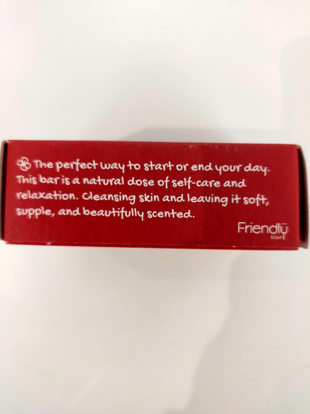 Ingredients: Sodium cocoate, Sodium rapeseedate, Aqua, Sodium shea butterate, Pelargonium graveolens (rose geranium) leaf oil, Rubia tinctorum (madder) root, Citronellol*, Geraniol*, Linalool* *occurs naturally in essential oils.