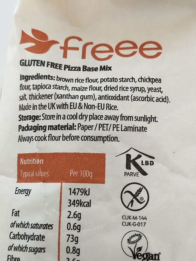 Perfect for pizza lovers, this gluten-free Pizza Base Mix makes creating delicious pizzas at home simple and easy. In just a few steps, and with only a couple of additional ingredients, this Pizza Base Mix will make two thin and crispy or a large deep pan pizza for everyone to enjoy. This product is Coeliac UK, Vegan and Kosher certified.