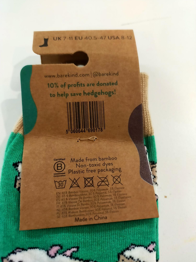 Hedgehog Bamboo Socks Bare Kind size 7-11