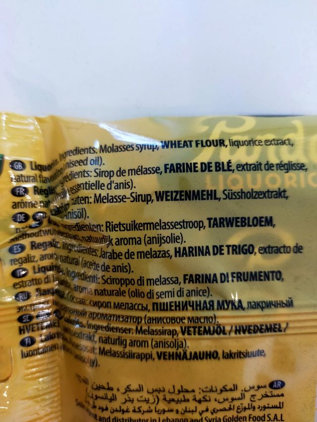 Molasses syrup, WHEAT FLOUR, liquorice extract, natural flavouring (aniseed oil).