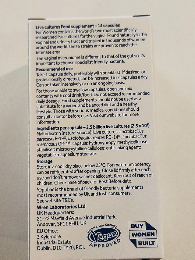 The two strains in this product are proven to survive to reach the intimate area. With over 30 years of research, you can trust that if you want a friendly bacteria supplement especially for female intimate flora, OptiBac 'For women' is the one for you.