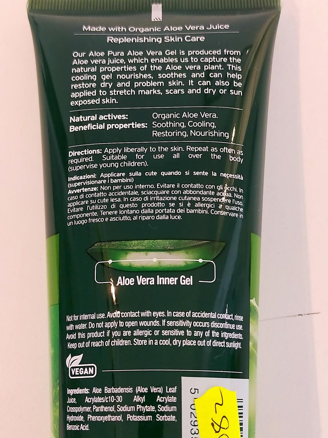 ORGANIC, NATURAL ALOE VERA - Aloe vera can provide a host of beneficial properties: soothing, moisturising, softening and helping to restore dry and damaged skin.