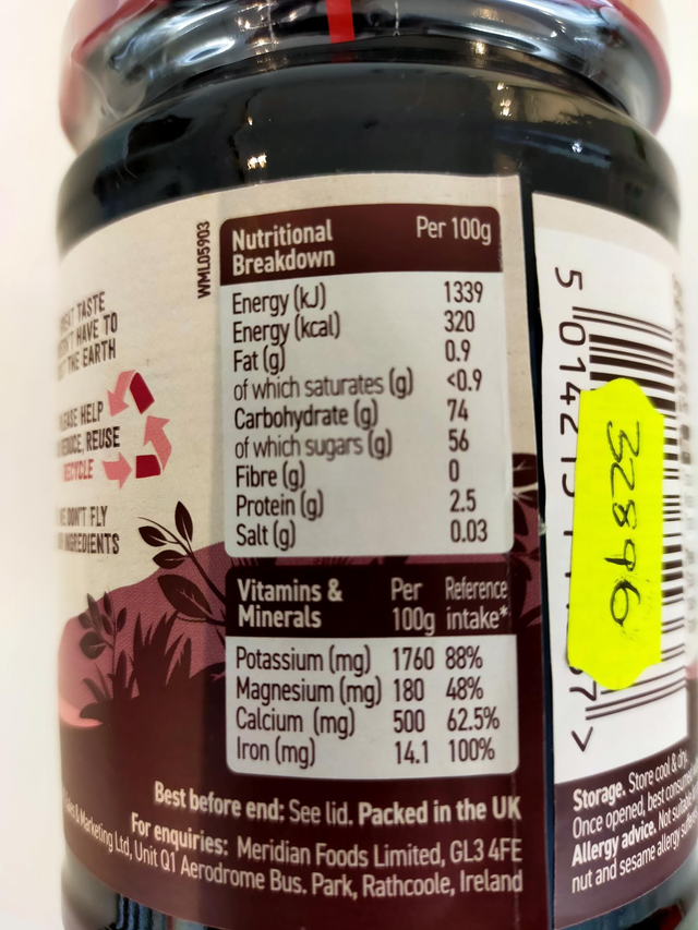 Organic Blackstrap Molasses 350g (Meridian) 32896
