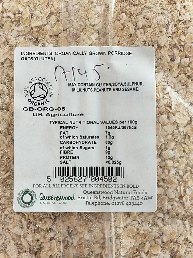 1kg Organic Raw Porridge Oats.