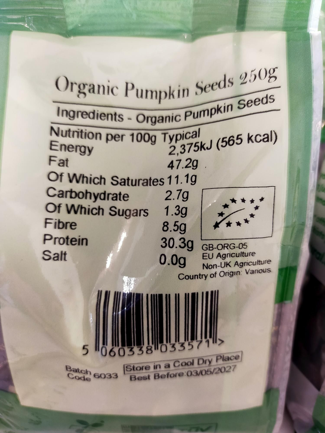 Organic pumpkin seeds 250g