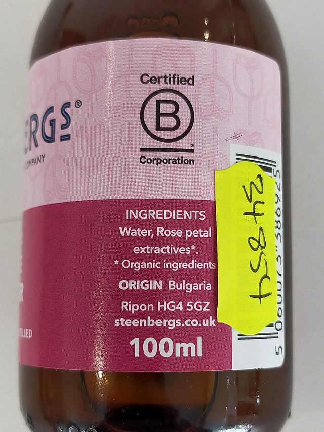 Organic Rose Water 100ml (Steenbergs) 34854