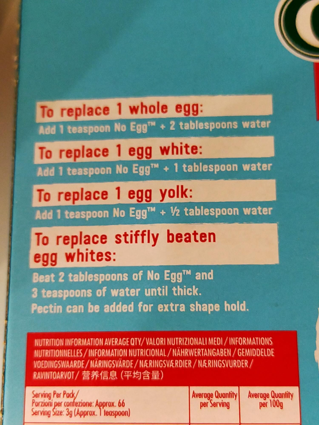Orgran Gluten Free No Egg Natural Egg Replacer is a great store cupboard ingredient as each pack is the equivalent of 66 whole eggs. Orgran No Egg contains no cholesterol, no lactose and no egg or animal derived ingredients. This convenient egg substitute is suitable for baking cakes, biscuits, meringues, and even mayonnaise. Organ No Egg can be used as a binder and thickener, in a gluten-free batter mix for pancakes or waffles, egg-free custard or cream filling, the options are endless.
