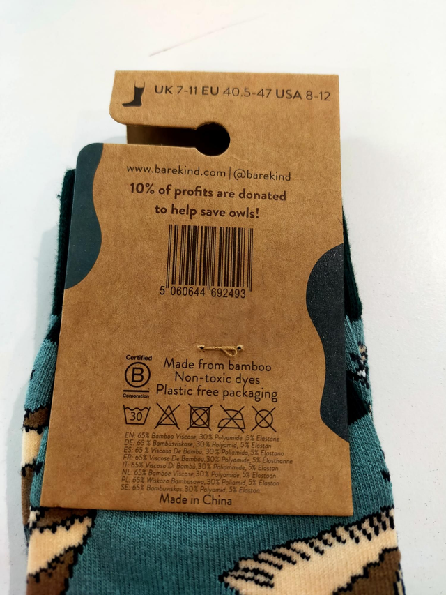 Owl Bamboo Socks size 7-11 Bare Kind