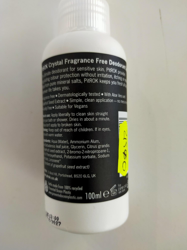 PitROK Crystal Deodorant 100ml Pump Spray (Fragrance Free) 21570