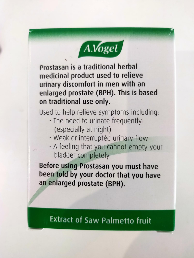 Prostasan® contains an extract of Saw Palmetto berries. It is a registered traditional herbal remedy used for the relief of lower urinary symptoms of BPH in men with the diagnosis of benign prostatic hypertrophy.