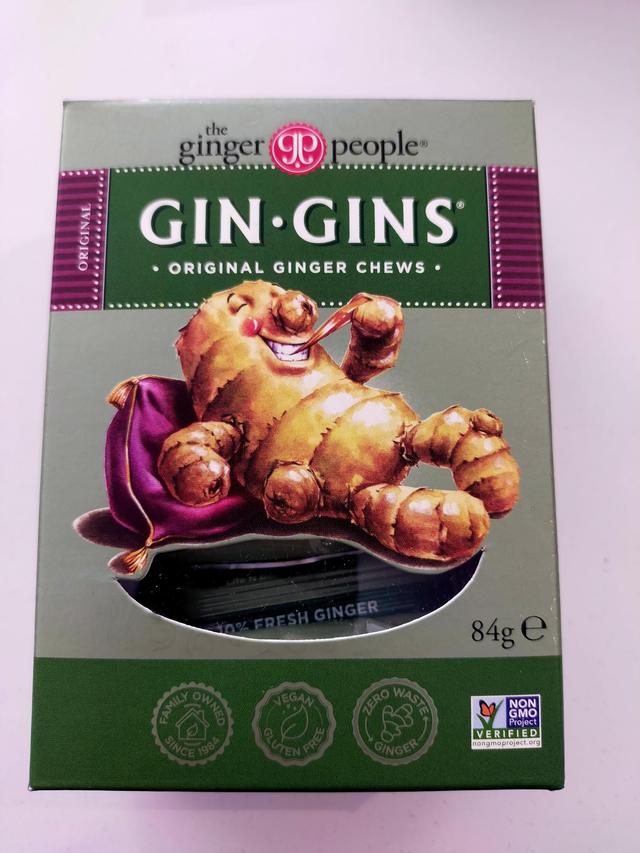 North America's Nr. 1 selling ginger candy and winner of Fiery Food Association's Scovie Award for "Best Candy," our Gin Gins Original Chewy Ginger Candies are natural, stimulating and delicious. Given ginger's queasy-quelling properties, Gin Gins Original Chewy Candies are great to fight off nausea while flying boating or going on a bumpy road trip, and come in a handy pocket-sized Travel Pack. Surprisingly and satisfyingly spicy. The only candy that bites you back!